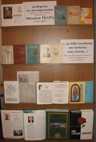 За автографами на поетичних збірочках, які представлені на стенді, можна дізнатись про взаємини Михайла Ткача та Анатолія Добрянського впродовж їхньої 50-літньої дружби. Почалося це знайомство далекого 1952 року, коли Анатолій Миколайович переступив поріг рідного університету.