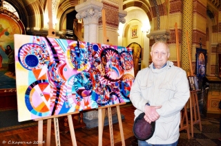 На фото – художник Андрій Житару біля власного полотна “Небесна Сотня”. Джерело –