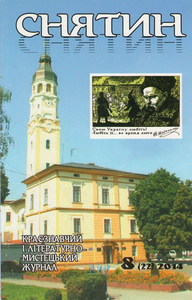 Снятин. Краєзнавчий і літературно-мистецький журнал. – 2014. – № 8 (22). – 96 с.