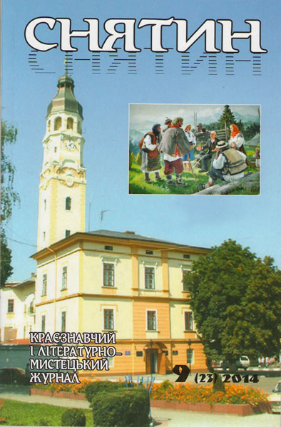 Снятин. Краєзнавчий і літературно-мистецький журнал. – 2014. – № 9 (23). – 96 с.