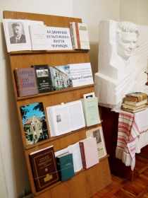 На виставці представлено двотомник праць В.Сімовича, підготовлений колективом науковців (Л.Ткач, Ф.Погребенником і Я.Погребенником). У ньому подано найцінніші, актуальні й нині статті з мови, літературознавства, педагогіки, культурології. Також його спомини про О.Кобилянську, Лесю Українку, праці Ю.Шевельова, в яких він належне місце приділяє своєму вчителеві. Тут же представлено монографії В.Добржанського, Н.Бабич, О.Пенішкевич, в яких висвітлено роль професора Сімович у розвитоку українства в нашому місті. |