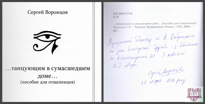 Воронцов С.П. …танцующим в сумасшедшем доме… (пособие для отщепенцев). – Чернівці: Видавництво «Книга -ХХІ», 2016. – 64 с.