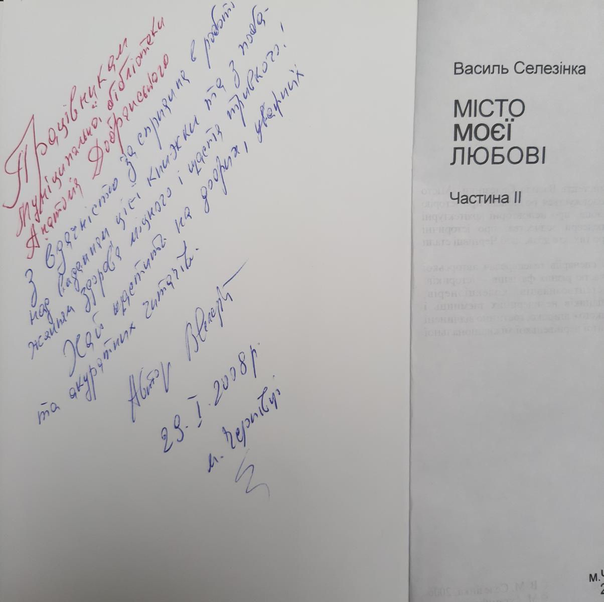 У Муніципальної бібліотеки своя, довга і яскрава, чимось навіть кіношна історія знайомства з Василем Михайловичем. Саме він був людиною, що спонукала Лесю Ілярівну Щербанюк займатися краєзнавством ґрунтовніше, адже ледь не щодня відвідував бібліотеку у пошуках нових відомостей про місто та його жителів. А вже коли вона стала директором нової, урочисто відкритої за кошти міського бюджету та особистої підтримки мера міста Миколи Федорука, світлої бібліотеки імені А. Добрянського, попри шалене завантаження і щільний графік роботи, став не лише її постійним відвідувачем, але й цінним другом і спікером. Свідченням цього є автографи, які він із щирими побажаннями залишив на своїх книгах
