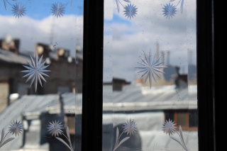 Девіз стилю арт-деко – більше світла та сонячних променів. Тому все в ньому має служити саме цій меті. Великі кришталеві люстри, торшери та лампи повинні підкреслити природне світло з вікон, а скляні, лаковані поверхні, дзеркала та метал – відобразити та розсіяти його. Найбільше вікно, викладене з кришталевих віконечок з відшліфованим на кожному надзвичайно вишуканим малюнком, а тому сонце, заломлюючись, освітлює всю сходову клітку. Зверху є ще одне бічне невелике вікно, виконане подібним чином. Очевидно, що таку складну філігранну шліфовку Фішери могли втілити тільки у власних скляних майстернях. Аналогічних або подібних в нашому місті більше наразі не виявили.
