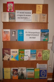 На виставці можна ознайомитись з навчальними посібниками В. Мозгового «Українська мова у професійному спілкуванні», який складається з двох частин: частина перша (лекційний курс) передбачає теоретичне викладання матеріалу за модульним принципом; друга (практичний курс) містить коротке викладання курсу в таблицях, вправи і завдання, методичні поради щодо перекладу професійних текстів, а також контрольні тексти для кожного модуля. З різноманітними схемами й зразками розбору слів і речень, таблицями, графіками морфемного і словотвірного аналізу можна ознайомитись в книзі Г. Козачук  «Українська мова для абітурієнтів». Про культуру мовлення вчимося у навчальному посібнику Г. Голосовської «Українська мова». Культура мовлення починається із самоусвідомленням мовної особистості і виявляється у послуговуванні мовними нормами.